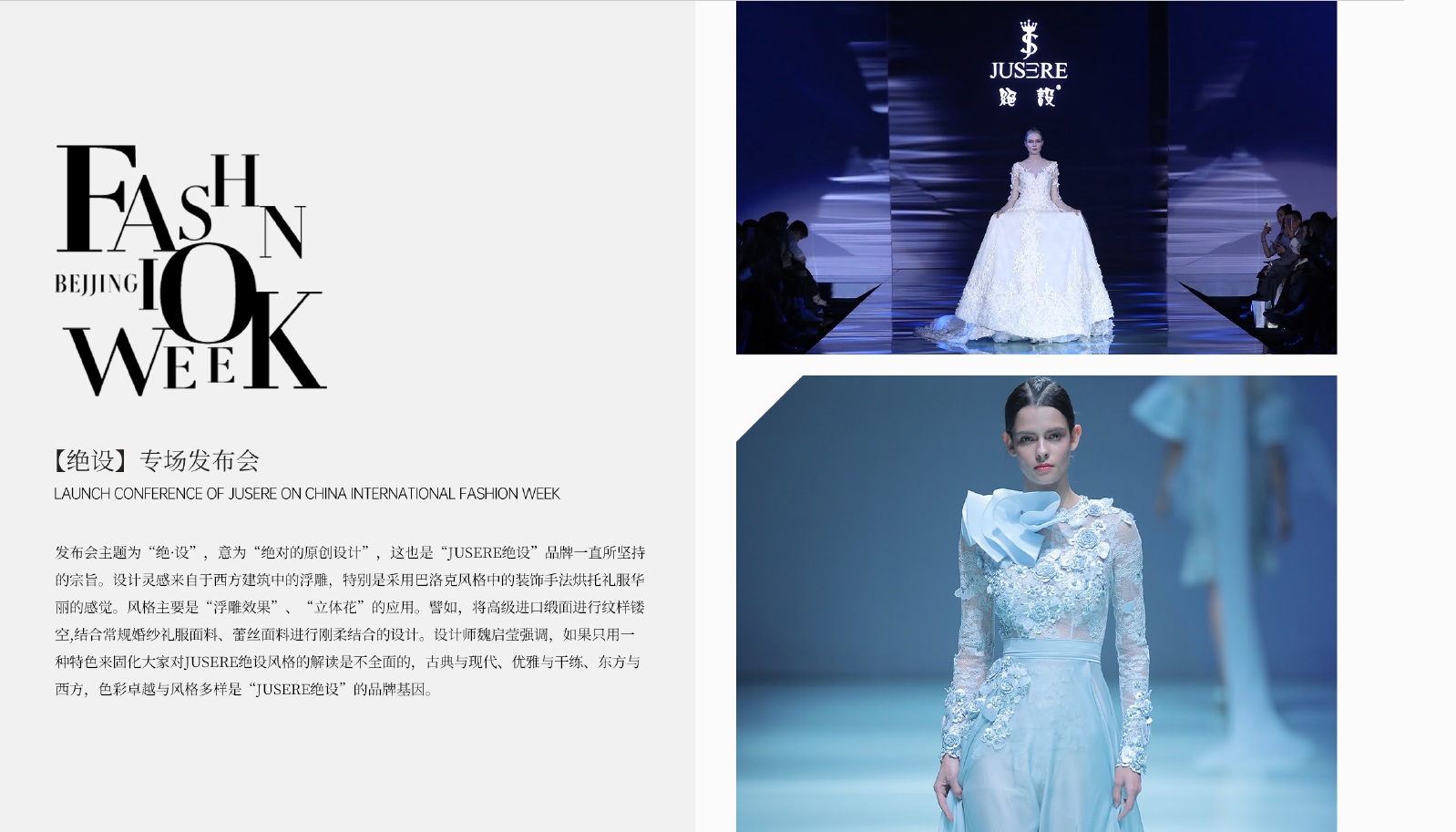2002年,绝设品牌在苏州成立。产品涵盖婚纱、礼服、名媛礼服、私人定制等,历经19年潜心发展,已成为研产销一体化的婚纱礼服品牌。