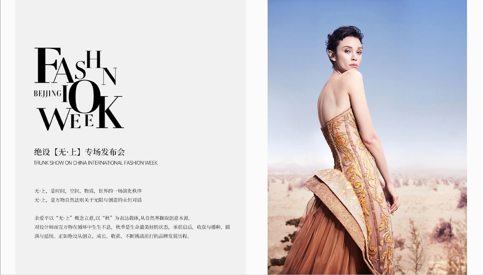 同时,绝设品牌获得了广大市场的认可,先后荣获“中国婚纱礼服行业十大创新品牌”、“改革开放40周年 中国品牌特别奖”,“亚洲(行业)十大创新品牌”等荣誉。